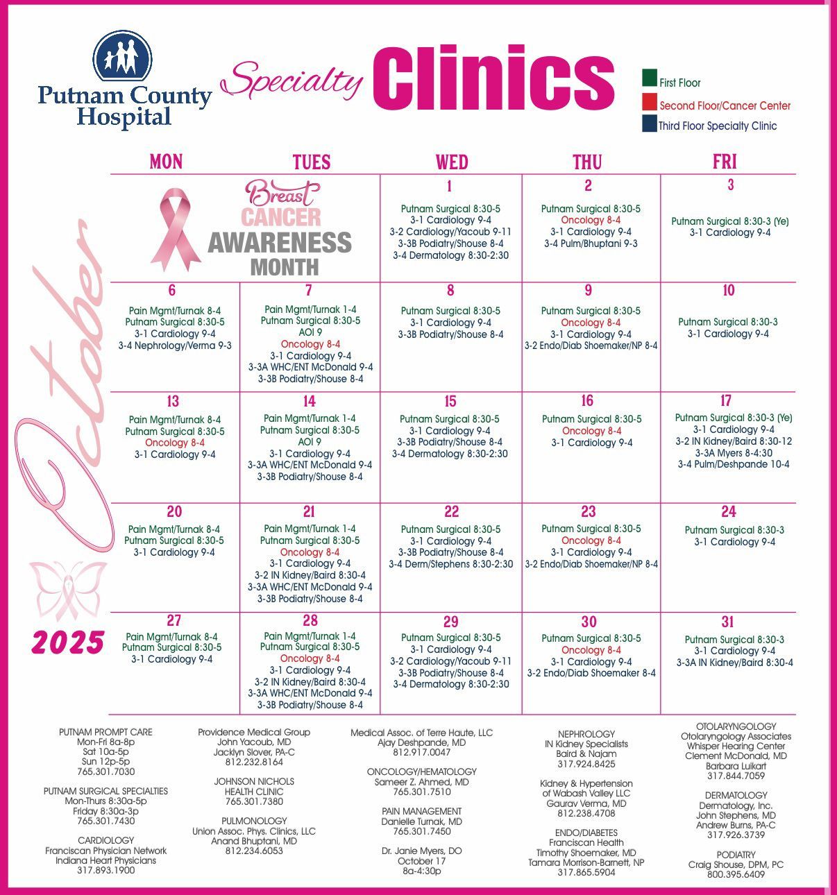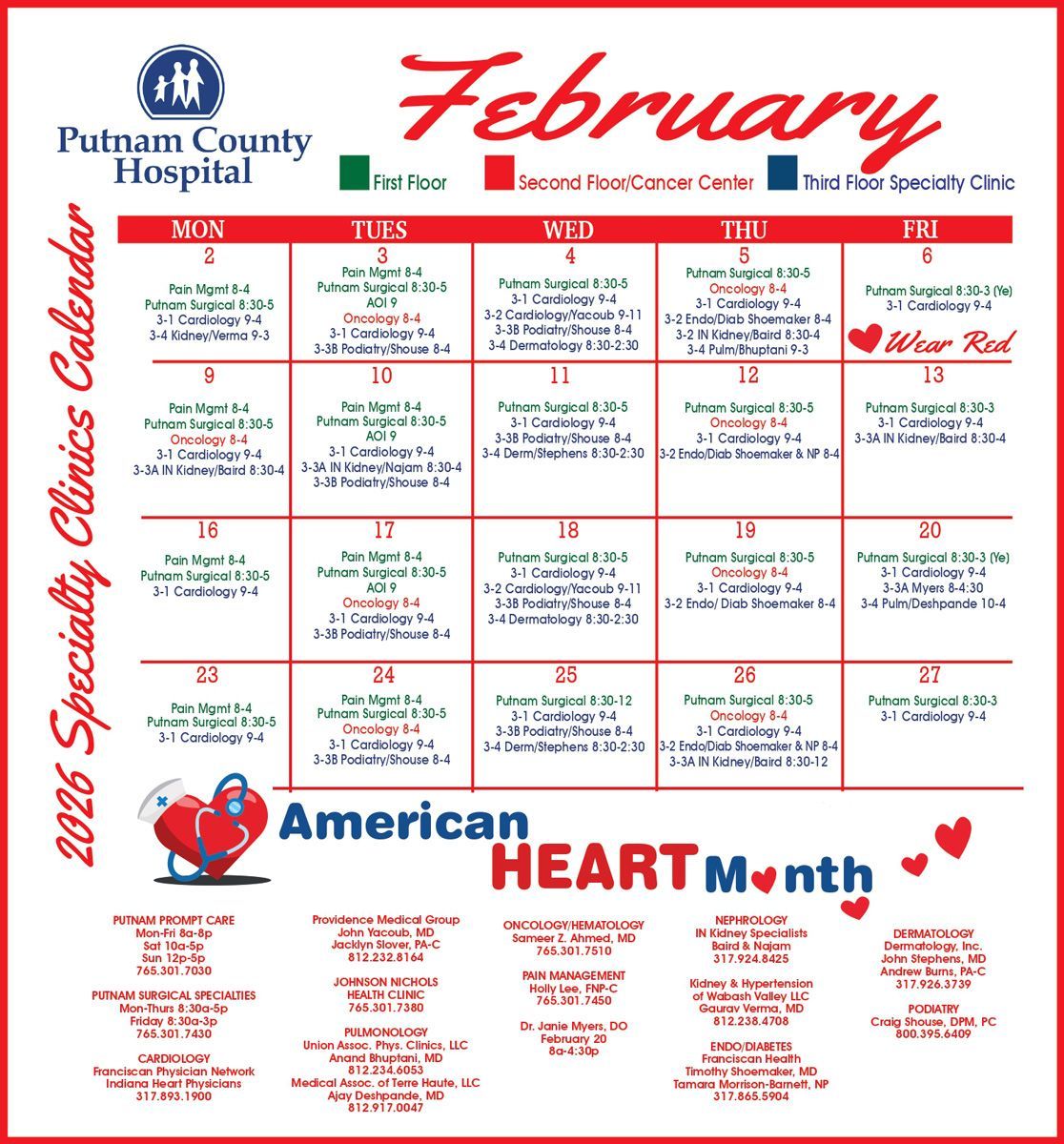 VISITING SPECIALIST CALENDAR